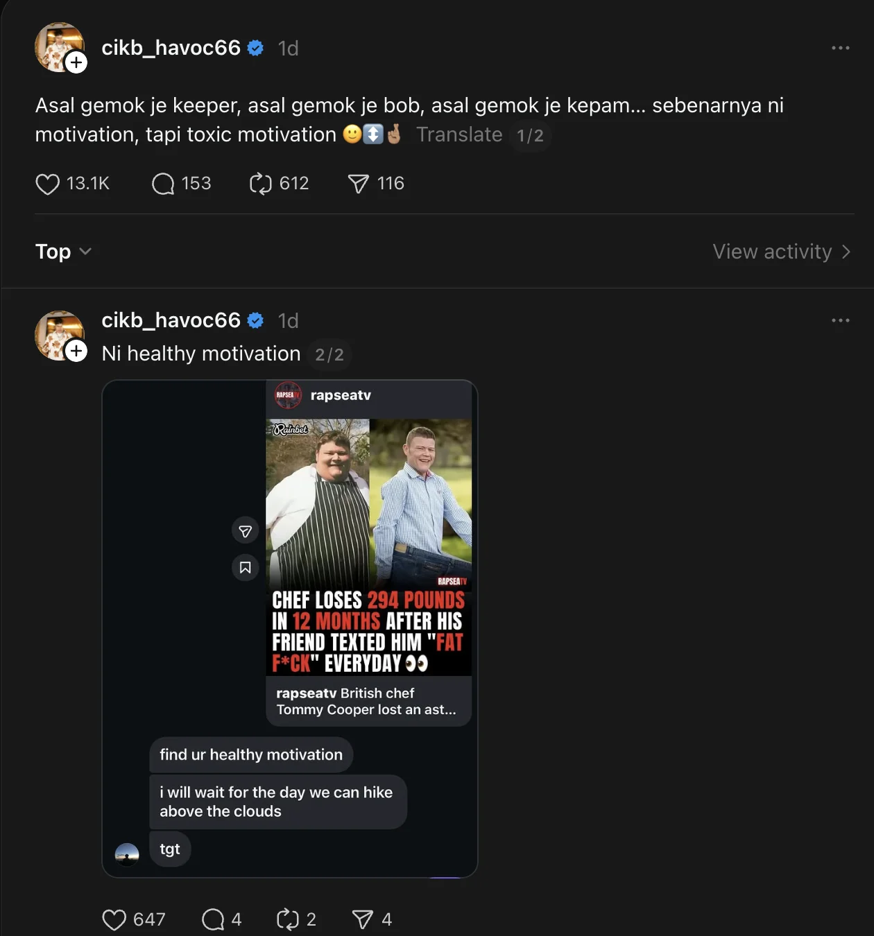“Asal gemok je keeper, asal gemok je bob, asal gemok je kepam… sebenarnya ni motivation, tapi toxic motivation.”