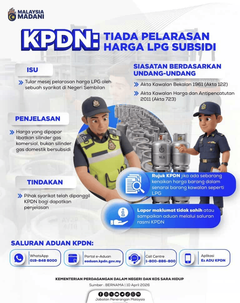 Namun, penting untuk difahami bahawa harga tong gas bersubsidi untuk kegunaan isi rumah sebenarnya masih kekal, seperti yang ditetapkan oleh Kementerian Perdagangan Dalam Negeri dan Kos Sara Hidup (KPDN).