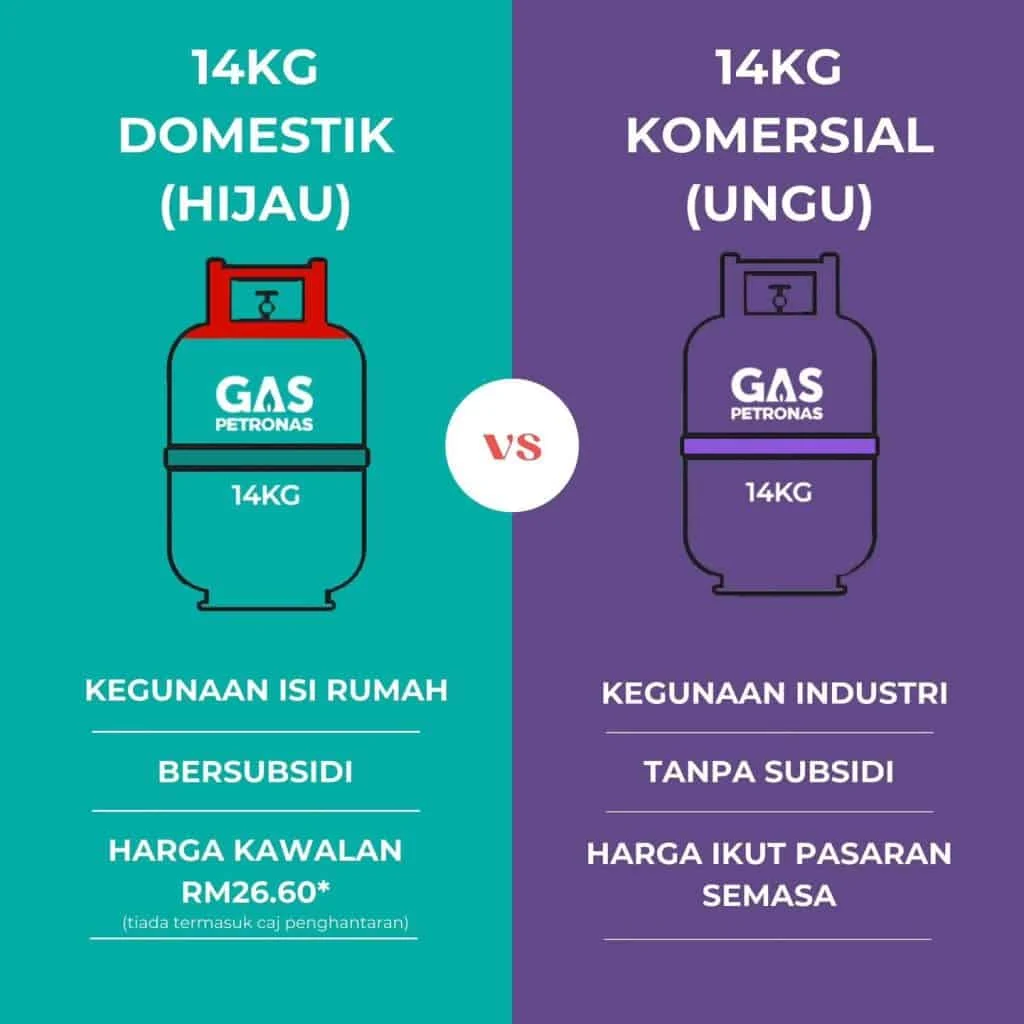 Tips: Cara paling mudah nak bezakan? Tengok warna tong gas dan jenis penggunaan.