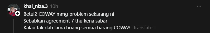 Satu perkongsian seorang pelanggan di Thread baru-baru ini mencetuskan perhatian ramai apabila dia meluahkan rasa kecewa terhadap perkhidmatan Coway yang didakwa lambat dan tidak konsisten.