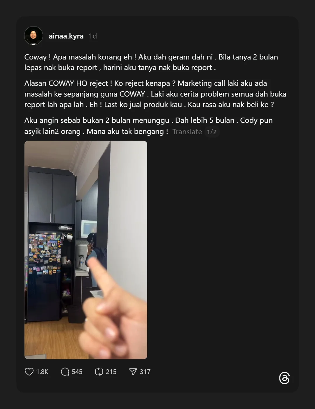 Pelanggan Bengang Lebih Lima Bulan Tunggu Servis, Isu Coway Cetus Perdebatan Netizen