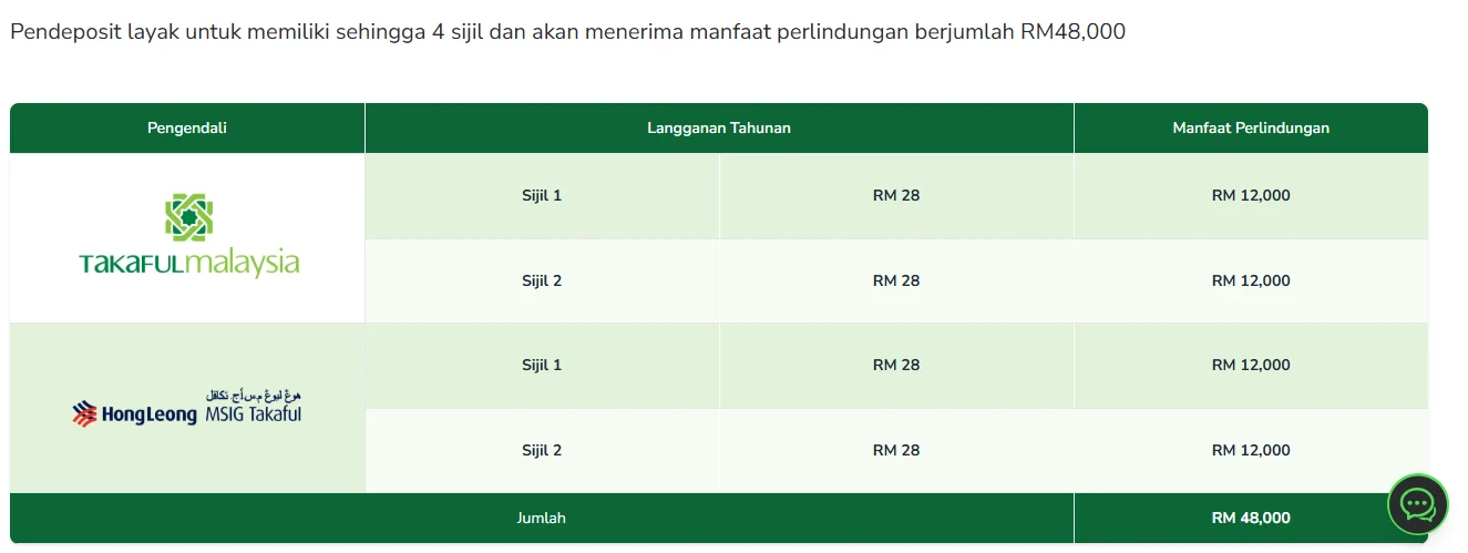 Pendeposit dibenarkan untuk mendaftar sehingga empat sijil, sekali gus membolehkan jumlah perlindungan meningkat dengan ketara.